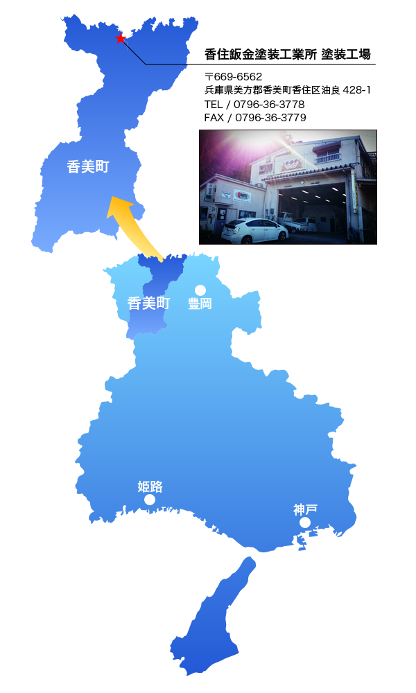 香住鈑金塗装工業所 塗装工場 Kasumi Body Paint Industries